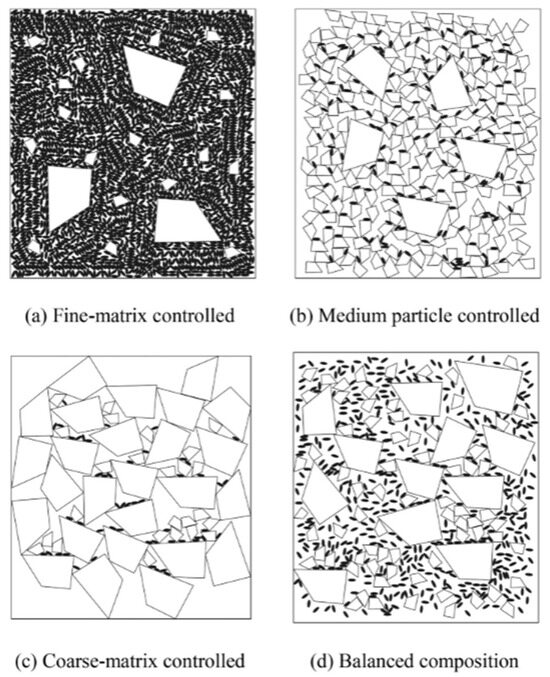 The authors discovered that variations in grain size distribution and flume gradient significantly impacted the outcomes of their experiments, leading to the conclusion that the textural properties of landslide dams—defined by particle size distribution and the hydrodynamic conditions of the inflow discharge—play a crucial role in determining the failure modes and processes of these dams. They observed that traditional metrics like grading dimensions, uniformity, and curvature coefficients are inadequate for predicting the failure mode of a specific embankment. Consequently, they propose a novel classification system for embankment materials based on two distinct grading dimensions, identifying four soil types, fine-matrix-controlled, medium-particle-controlled, coarse-matrix-controlled, and balanced-composition soils, as illustrated in (Figure 3).