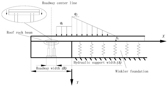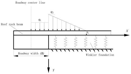 where k is the Winkler foundation coefficient, related to the thickness and mechanical properties of the coal rib. k = E0b/h0, where b is the beam width; E0 is the compression modulus of the coal rib; and h0 is the thickness of the coal rib cushion layer.