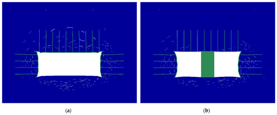 Surrounding rock crack distribution under different support forms: (a) conventional bolt-cable support; (b) area control support.