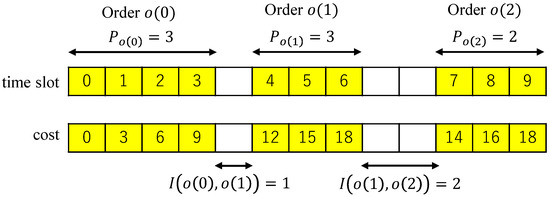 Order then occupies time slots from to . Accordingly, the total cost of the permutation o is defined as