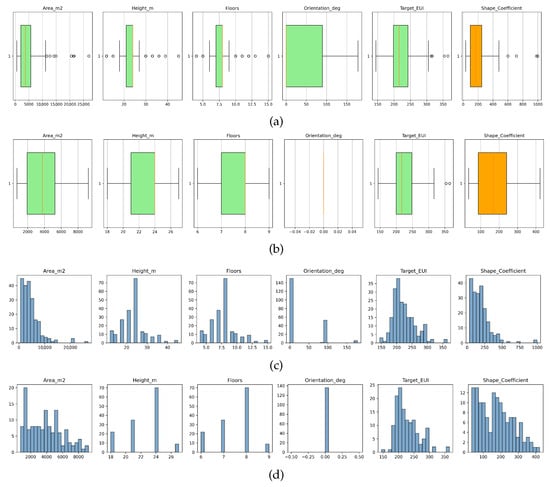 - Orientation: Azimuth angle of the main facade (degrees), determined by analyzing dominant facade orientations.