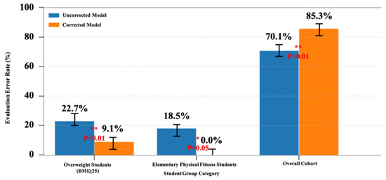 Overweight students (BMI ≥ 25): Assessment error decreased from 22.7% to 9.1% (p < 0.01, paired t-test). Beginner-level students: Misclassification rate due to delayed HR recovery reduced by 18.5%. Overall accuracy: Increased by 15.2% (from 70.1% to 85.3%), confirming the efficacy of BMI and fitness-level correction factors.