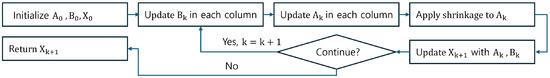 where a matrix denotes the identity matrix and represents another Lagrange multiplier [26,27]. The orthogonality constraint encourages B to be orthogonal, an assumption used in the derivation of the proposed low-rank optimal relaxation method; details are provided in Section 3.2.