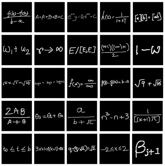 - Yuan, Y.; Liu, X.; Dikubab, W.; Liu, H.; Ji, Z.; Wu, Z.; Bai, X. Syntax-Aware Network for Handwritten Mathematical Expression Recognition. In Proceedings of the IEEE/CVF Conference on Computer Vision and Pattern Recognition, New Orleans, LA, USA, 18–24 June 2022; pp. 4553–4562. [Google Scholar] [CrossRef]