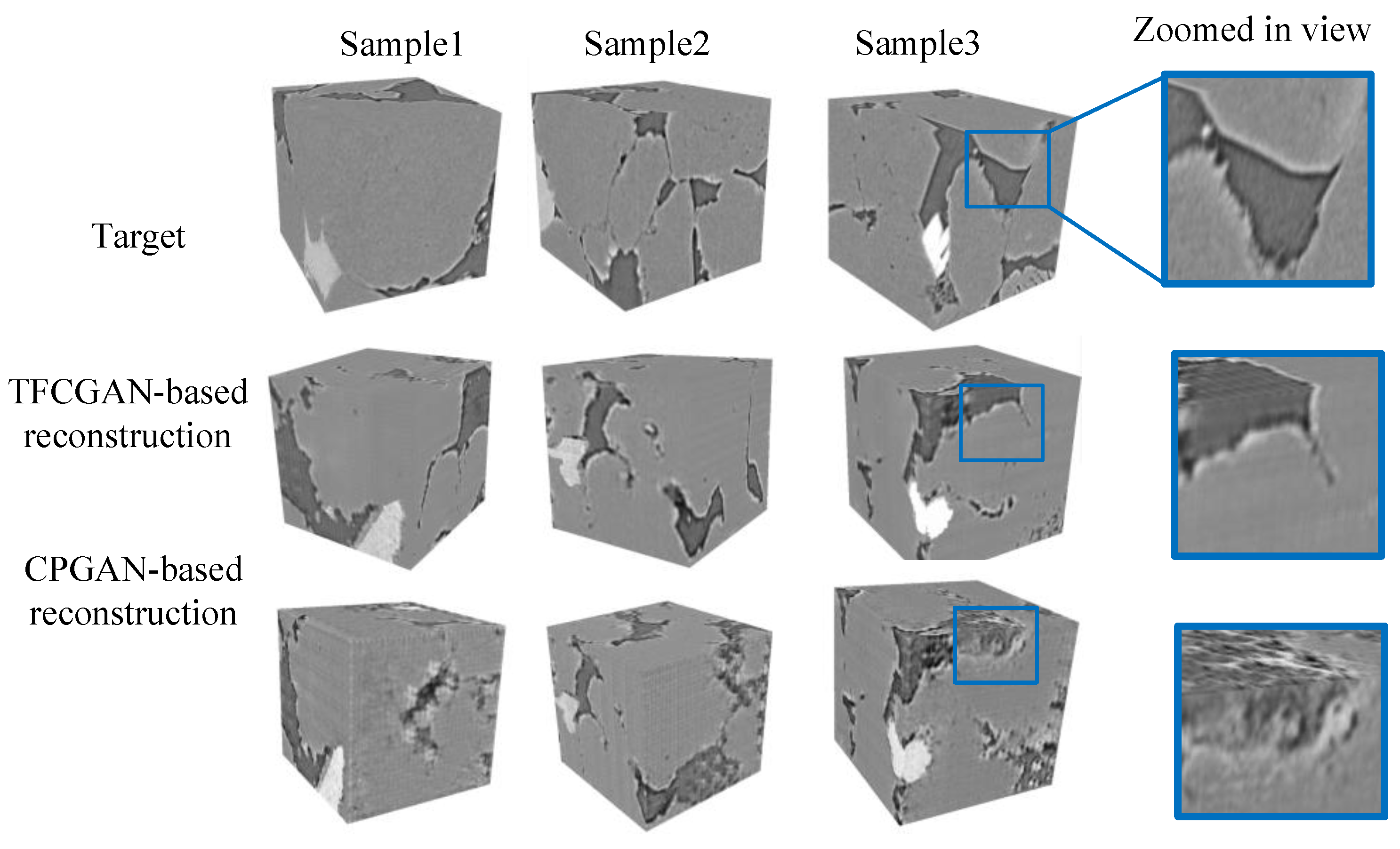 31] used deep learning technology to propose the cascaded progressive generative adversarial network (CPGAN) for the reconstruction of 3D gray-scale core images.