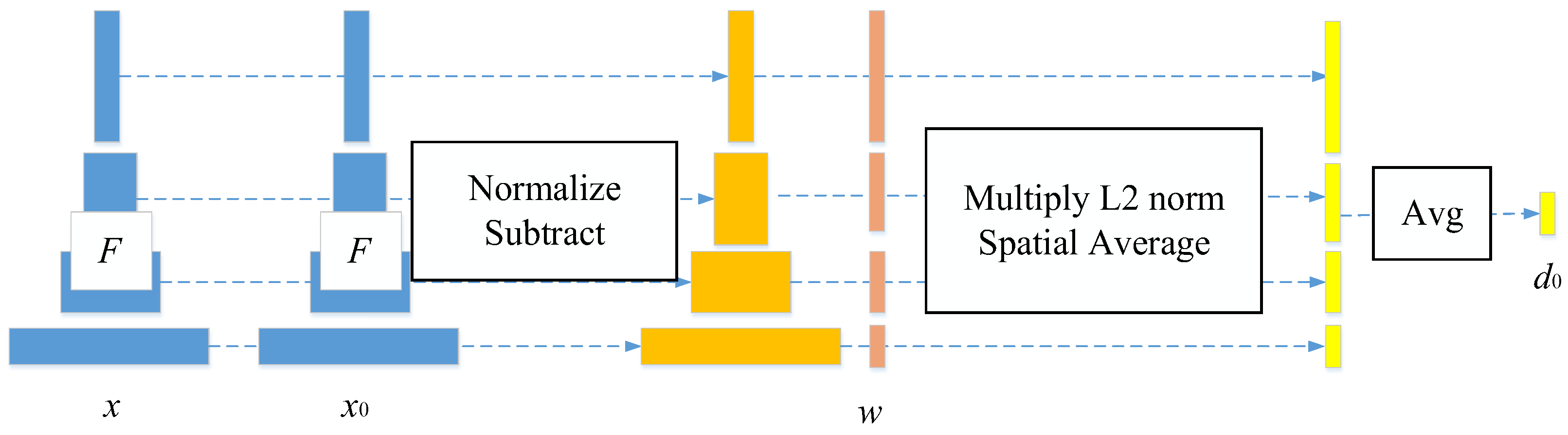 Textural similarity is designed using the normalized spatial global means of the feature maps, as shown in Equation (4).