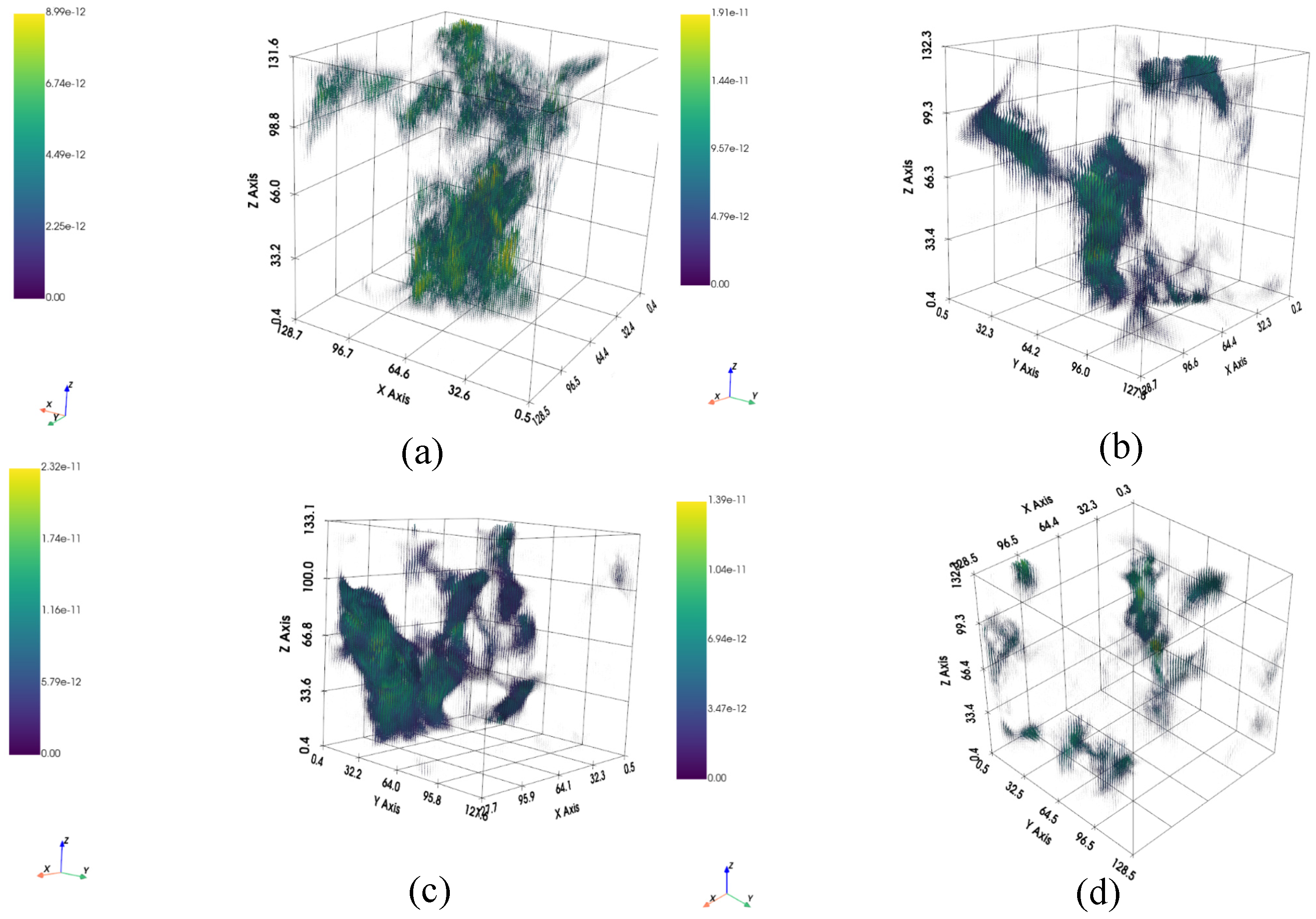 Deep learning techniques such as the GAN can fit complex functions and high-dimensional spatial data distributions and therefore have been widely used in the field of 3D digital core reconstruction. The network designed in this paper can reconstruct cores and use the reconstruction results to simulate core flow characteristics. However, it should be recognized that the internal mechanisms of deep learning techniques such as the GAN are like a black box and their physical interpretability remains an issue worth exploring. The authors and other researchers in the field will continue to study related issues.