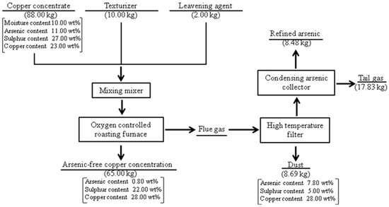 - Nakazaw, S.; Yazawa, A.; Jorgensen, F.R.A. Simulation of the removal of arsenic during the roasting of copper concentrate. Metall. Mater. Trans. B 1999, 30, 393–401. [Google Scholar] [CrossRef]