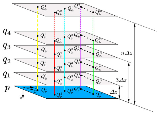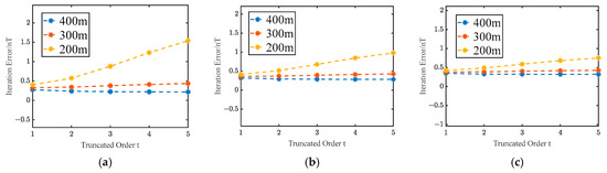 - The values of the each order of derivatives on every vertical line can be calculated using Equation (8). The initial truncated order t of derivatives is set to .