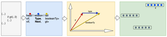 12]. Unlike the previously mentioned approaches, which are language-specific, this method is designed to be language-agnostic. In this framework, code elements are decomposed into structural “triplets” (entity–relation–entity) and subsequently encoded using a Knowledge Graph Embedding method [