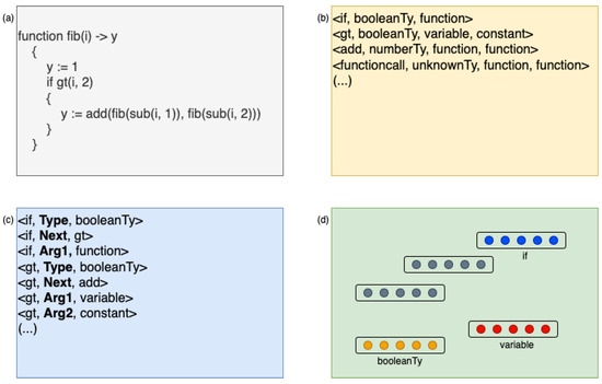 12], the author generated triplets for knowledge graph embedding, which served as embedding seeds for Yul elements. Finally, a solution was developed to calculate vector representations for Yul-based programs. This method computes the final vector representation of a Yul program by summing the vectors of all components within the program’s Abstract Syntax Tree (AST).