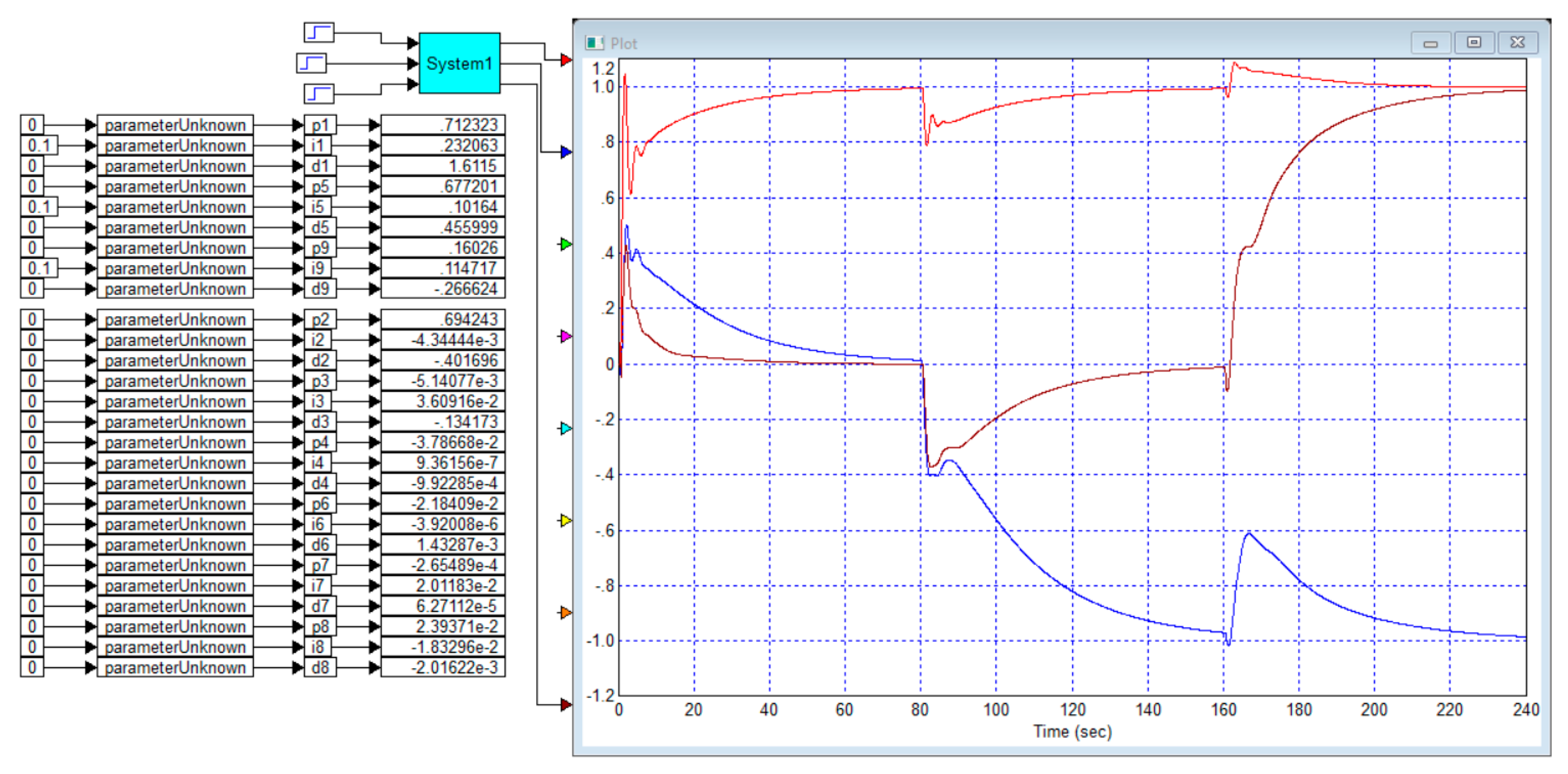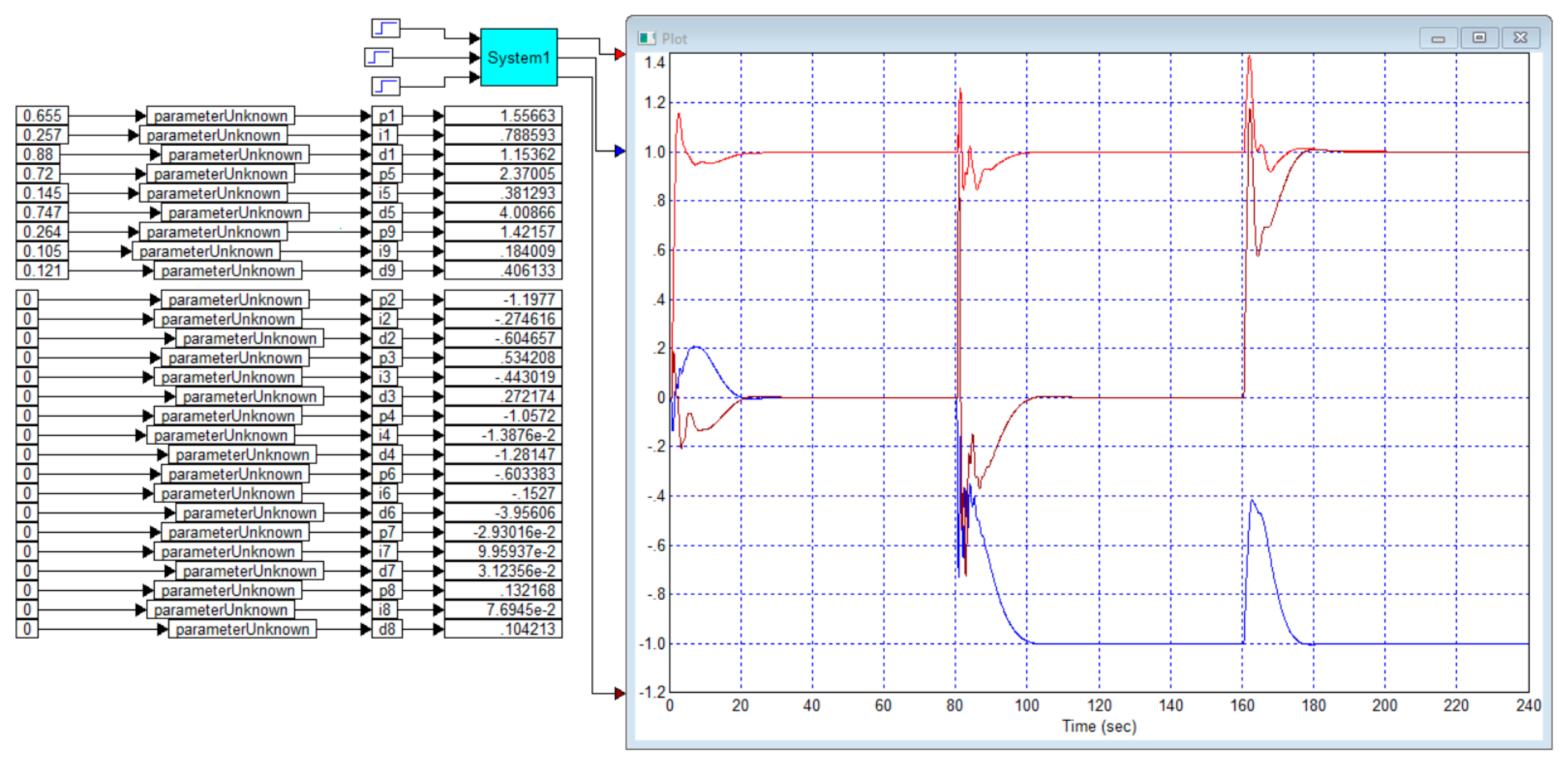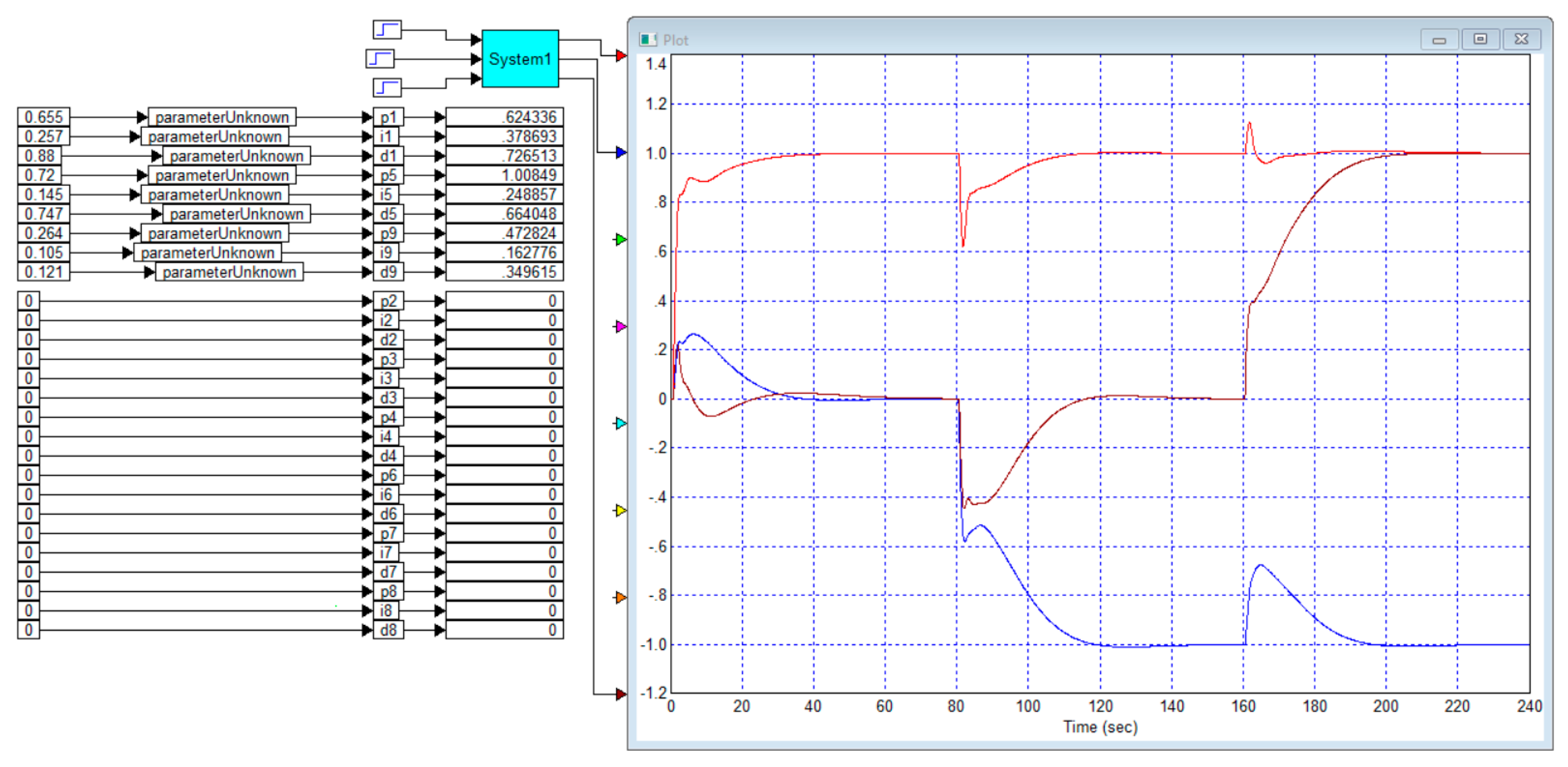 Figure 3) and remove the additional “parameterUnknown” blocks from the design. As can be seen from the figure, the control remains successful and even the deterioration of the control quality is not too great.