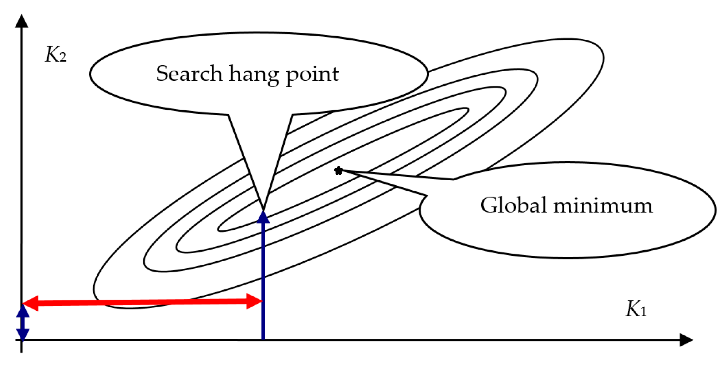 The approach to solving the optimization problem proposed in the article recommends using the complex cost function (10) as the objective function. This cost function is an integral of the sum of several terms. The main n terms are the product of the error module of each signal and the function , i.e., the time since the start of the change in the task at any of the inputs. In addition to these main n terms, n terms are introduced into the cost function, calculated as the positive part of the product of the error in each channel and its derivative. It is recommended to apply a weighting coefficient to these additional terms. The selection of the weighting coefficient is carried out based on the required suppression of oscillations and overshoot. Increasing this coefficient reduces and even completely suppresses overshoot but can lead to an increase in the duration of the transient process. For the first time, it is proposed to use the square root for each of these additional terms, which makes the cost function more natural and eliminates the quadratic dependence of these terms on the amplitude of the test signals.
