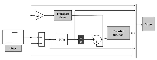 The proportional (P) and integral (I) gains were obtained using Simulink’s automatic tuning function, applied to the identified system model under a unit negative feedback configuration, as illustrated in Figure 9. The resulting PI parameters are listed in Table 4.