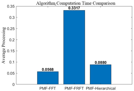In contrast, the proposed hierarchical algorithm demonstrated a remarkable balance of performance and efficiency. With an average processing time of 0.088 s, its computational cost was on the same order of magnitude as the baseline PMF-FFT method (0.0568 s) and was substantially faster than the full two-dimensional PMF-FRFT search (0.3317 s). This efficiency highlights its significant potential as a practical engineering solution.