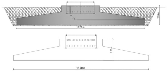 It is seen that 1/4, 1/12, 1/15, and 1/20 scale models have been created in the literature in accordance with the parameters examined and the scope of the study in order to carry out laboratory scale tests [35,36,37]. Considering the laboratory conditions where the tests are planned to be carried out, it was decided that the most appropriate scale to be studied for the existing tower and foundation connection would be λ = 1/15. In order to create a laboratory scale tower and foundation model and perform tests on it, the existing circular foundation was scaled to the specified scale value (1/15). The geometrical features of the scaled model are presented in Figure 4.