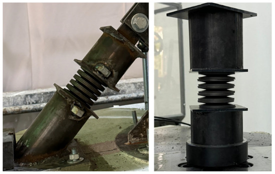 The finite element model of the prototype spring-type damper was developed and manufactured to strengthen the tower–foundation connection area prior to the strengthened model finite element analysis was created in ABAQUS [39] software and analyzed. The force–displacement curve obtained as a result of the analysis was found to be consistent with the experimental results (Figure 19).