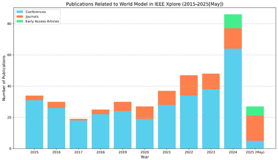 Publications related to World Models in IEEE Xplore (2015–2025 [May]).