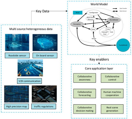 - Deep Human–Machine Collaboration and Trust Building: As the level of autonomous driving advances, future CAV systems will become complex systems deeply integrating human, vehicle, and road elements [39], with human–machine collaborative driving becoming the norm [40]. This necessitates that World Models not only accurately perceive the environment but also comprehend human drivers’ intentions, driving styles, and behavioral patterns. This capability is essential for achieving natural, efficient, and safe interactions, and for gradually establishing user trust in the system [41].