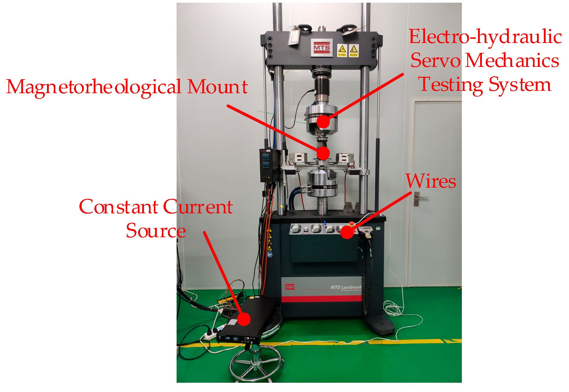 - Chen, S.; Li, R.; Du, P.; Zheng, H.; Li, D. Parametric Modeling of a Magnetorheological Engine Mount Based on a Modified Polynomial Bingham Model. Front. Mater. 2019, 6, 68. [Google Scholar] [CrossRef]