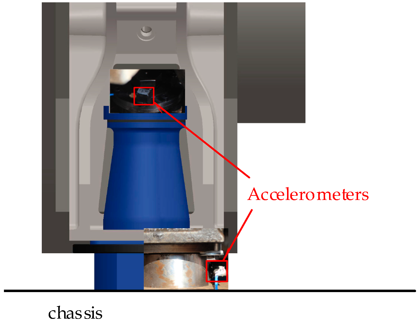 - Kim, S.H.; Yoon, D.S.; Kim, G.W.; Choi, S.B.; Jeong, J.Y.; Kim, J.H.; Kim, S.J.; Kim, I.D. Road traveling test for vibration control of a wheel loader cabin installed with magnetorheological mounts. J. Intell. Mater. Syst. Struct. 2021, 32, 1336–1348. [Google Scholar] [CrossRef]