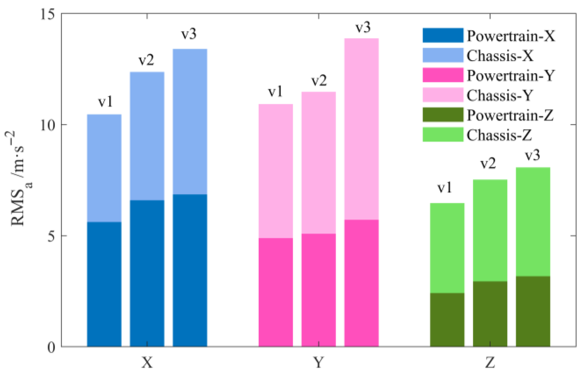 | Road  Spectrum Level  | Vehicle Speed (m/s) | Chassis Acceleration Response (m/s2) | Powertrain Acceleration Response (m/s2) | ||||