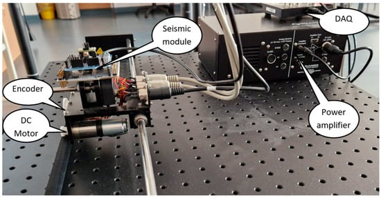 The mechanical structure comprises a low-friction linear guide rail supporting a precision-machined aluminum cart mounted on a steel baseplate (1200 mm × 800 mm). The cart is constrained to move along a single translational axis to minimize lateral displacement artifacts. Actuation is performed by a high-torque brushed DC servomotor coupled via a belt or lead-screw mechanism to the cart. The actuator incorporates an optical rotary encoder, enabling high-resolution position feedback.
