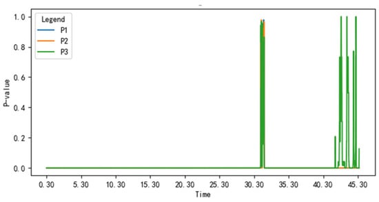 From the start time of SP, the data of every 10 time points are a sub-sequence, and the mean and variance of the preceding and following two sub-sequences are expressed as X1, X2, , and , respectively. The formula for calculating the statistic t of the moving t-test is (3). Finally, t is looked up in the table to obtain the mutation probability p value [34].