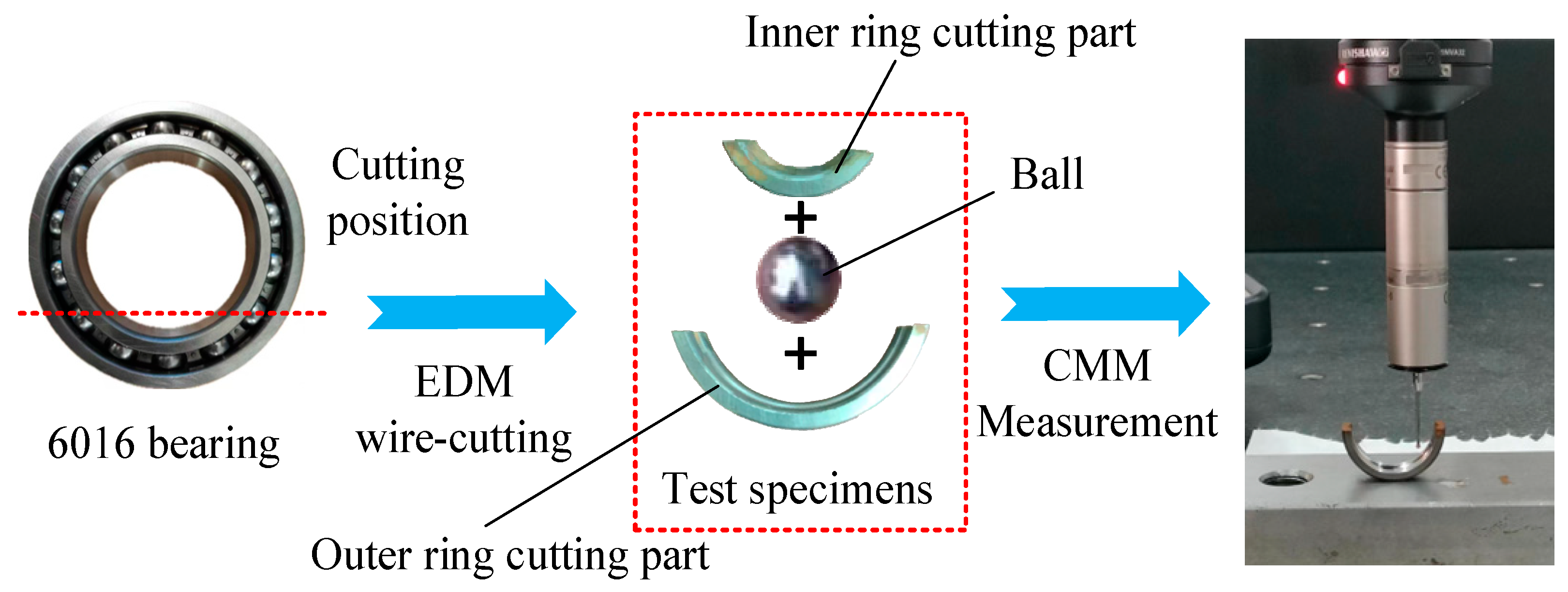 Figure 5. Processing of bearing measurement specimens (6016) and the measurement process of their dimensional parameters.
