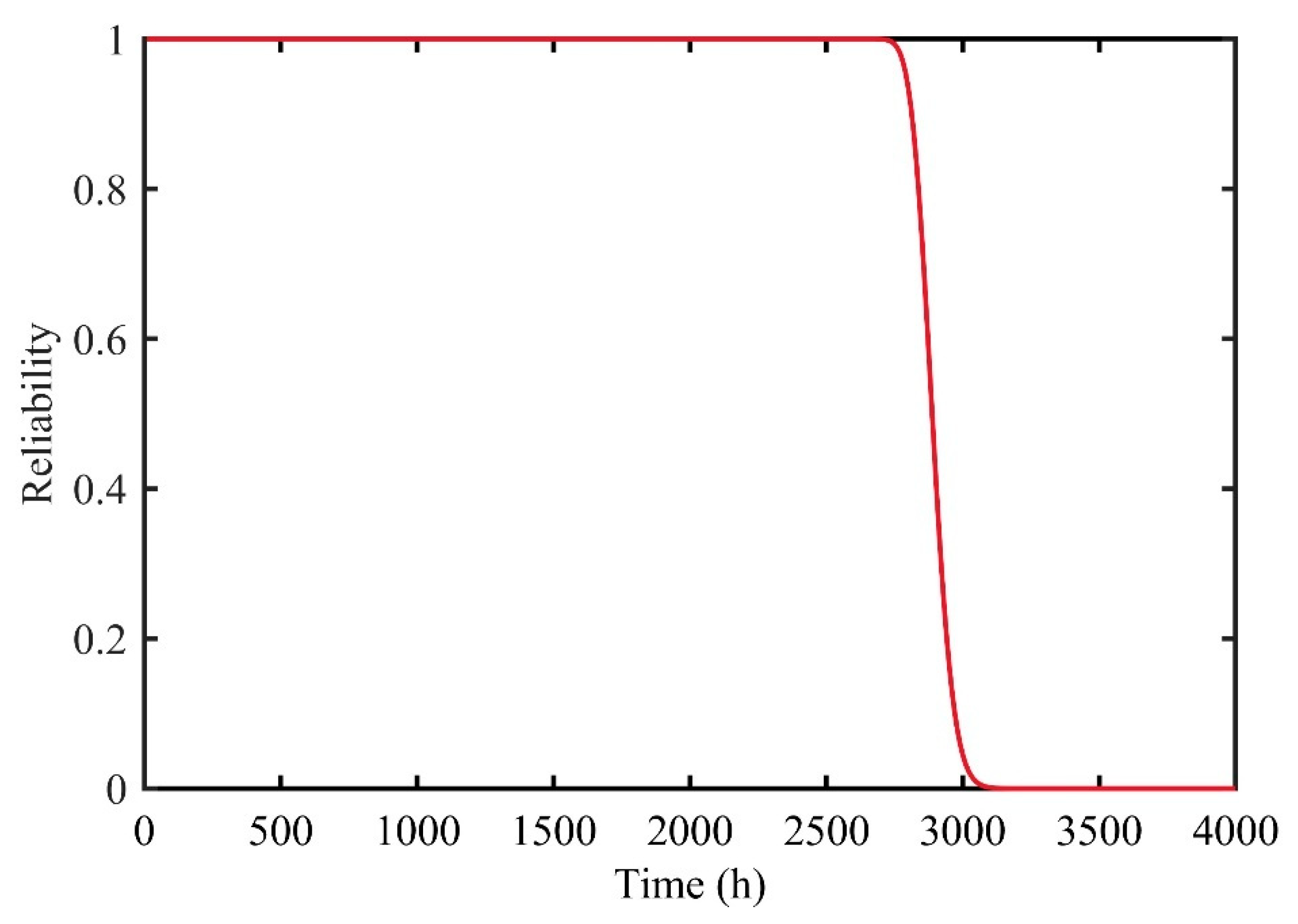 Figure 7. Comparison of fatigue reliability curves of 6016 bearing at 2600–3100 h of stabilization time variation under current operating conditions.