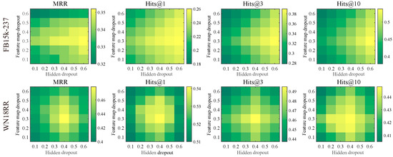Figure 4. Performance of various hidden and feature map dropouts on FB15k-237 and WN18RR datasets.