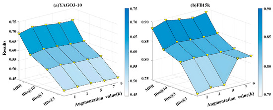 Figure 5. Performance of various augmentation values on YAGO3-10 and FB15k datasets.