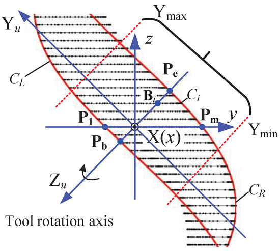 22]. Thus, the machinability of the helical surface is difficult to analyze. The computational accuracy is also subject to the point density generated on the helical curves. CAD approaches have the advantages of being intuitive and effective, as the machining process is considered a process of interference of the cutter with workpiece, with the interfered portion removed by the cutter [