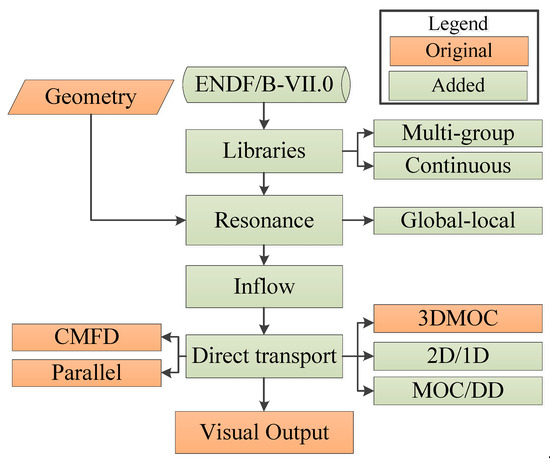 - Boyd, W.; Shaner, S.; Li, L.; Forget, B.; Smith, K. The OpenMOC Method of Characteristics Neutral Particle Transport Code. Ann. Nucl. Energy 2014, 68, 43–52. [Google Scholar] [CrossRef]