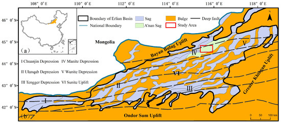 (a) The location of the Erlian Basin; (b) structural units division map of the Erlian Basin.