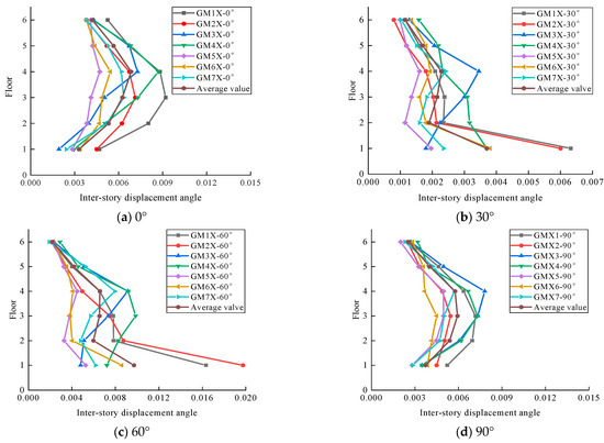 The inter-story drift ratio refers to the ratio of the maximum displacement between floors of a structure to the floor height, which reflects the stiffness of the structure and the overall elastoplastic deformation performance. Controlling the inter-story drift ratio can ensure that the stability of the structure meets the requirements. The structure to be studied in this paper is a frame structure, and its inter-story drift ratio limit is 1/50 [32].