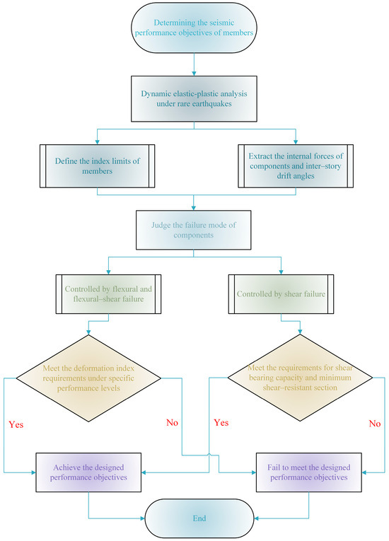 Performance-based architectural design hinges on the accurate identification of requirements, necessitating a broad perspective to establish priorities [13]. Zeng et al. [14] classified the performance levels of ST-RC frame-core tube structures based on threshold values corresponding to different damage limit states, including minor damage, moderate damage, and severe damage. Zhai et al. [15] improved the performance-based plastic design method, demonstrating its successful application in a 20-story frame structure. AbdelMalek et al. [16] addressed the shortcomings of the Egyptian Code (ECP-201) for high-rise building design by conducting performance-based optimization on three tall buildings. Their findings confirmed that performance-based design and evaluation can significantly enhance the structural performance of high-rise buildings. Yang et al. [17] implemented performance-based seismic design and evaluation on a practical project in Nanjing, Jiangsu Province, China. The study focused on a torsionally irregular structure with local staggered floors. Nonlinear dynamic analysis revealed that performance-based seismic design effectively maintained the structure’s overall seismic performance within acceptable limits, with key members meeting code requirements. Peng et al. [18] modeled five experimentally tested reinforced concrete frames and employed pushover analysis to assess their seismic deficiencies. The results underscored the irreplaceable value of performance-based evaluation methods in predicting seismic response, safety, and failure modes of frame structures.
