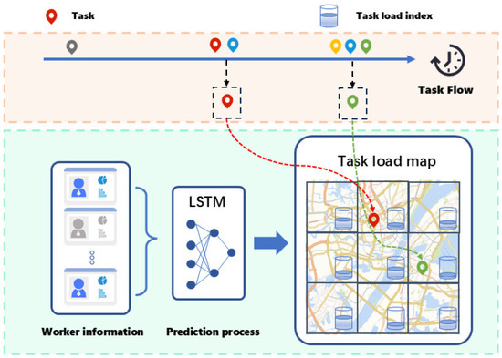Based on the above discussion, we use a deep learning approach to predict the number of available workers in different subareas during different sensing cycles and propose a metric we term “subarea task load”. To ensure a high task completion rate, we decide whether to accept real-time arriving tasks based on the task load of different subareas. In the worker selection phase, we adjust the worker selection strategy based on changes in task load.
