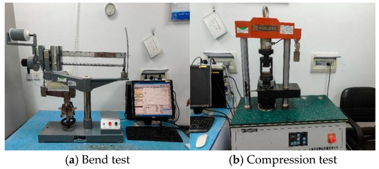 The testing of flexural and compressive strengths was conducted in compliance with the Method for Testing Cement Mortar Strength (ISO Method) (GB/T 17671-2021) [33]. Prismatic specimens measuring 40 mm × 40 mm × 160 mm were cast in sets of three and then cured in a standard chamber maintained at (20 ± 3) °C with ≥90% relative humidity (Figure 2) [33]. At designated curing ages of 7, 28, and 90 days, the specimens were demolded and subjected to strength testing, as illustrated in Figure 3.