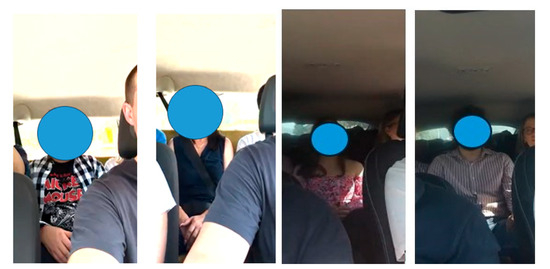 In Figure 3 some frames from the video footage captured during the tests are reported. In all the tests and for both the cars, it was noted that participants assumed the same posture: hands on the legs.