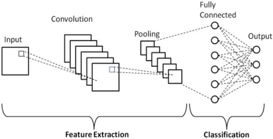 Figure 5 represents a basic schematic diagram of a CNN model. This illustrates the basic architecture of a Convolutional Neural Network (CNN), highlighting its two main components: feature extraction and classification. In the context of miner localization during underground emergencies, CNNs are used to automatically extract spatial features from input data—such as miner speed, direction, and location—collected via Delay-Tolerant Networks (DTN). The convolutional layers apply filters to the input data, capturing essential spatial patterns and movement trends relevant to miner behavior in constrained underground environments. Pooling layers then reduce the spatial dimensions, retaining the most significant features while minimizing computational complexity. These extracted features are passed to the fully connected layers, which perform high-level reasoning and classify the miner’s next location or movement pattern.