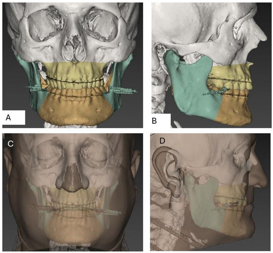 - Gokce, S.M.; Gorgulu, S.; Gokce, H.S.; Bengi, A.O.; Karacayli, U.; Ors, F. Evaluation of pharyngeal airway space changes after bimaxillary orthognathic surgery with a 3-dimensional simulation and modeling program. Am. J. Orthod. Dentofac. Orthop. 2014, 146, 477–492. [Google Scholar] [CrossRef] [PubMed]