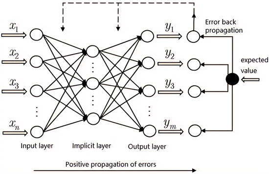 Lan M. et al. [13] developed a BP neural network model (Figure 6) using threshing drum rotational speed, concave sieve threshing clearance concave sieve separating clearance, and feed quantity as input variables. The output variables were crushing rate, impurity rate, and loss rate, representing the nonlinear threshing process of a flexible threshing device. The model was validated using 25 test data sets, yielding a correlation coefficient of 0.980, a RMSE of 0.139, and mean absolute error values. Through training and validation, the regression coefficient of determination between predicted and experimental values was also obtained. Sensitivity analysis identified rotational speed (15.00%), threshing clearance (14.89%), and separating clearance (14.32%) as the key factors influencing threshing performance, while feed quantity had the least impact (11.65%). This data-driven modeling approach elucidates the influence of key parameters, facilitating performance optimization of the flexible threshing device. The study employs the backpropagation neural network algorithm to construct the predictive model, overcoming the limitations of traditional mechanism-based models and effectively capturing complex nonlinear relationships.