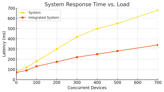 Data on latency with variable device loads are shown in Figure 5. In general, the unified architecture outperforms the system [11], with an advantage that increases as the number of vehicles reaches two hundred. In these stress tests, the impact of cognitive filtering and local consensus is unmistakable; the additional overhead simply disappears.