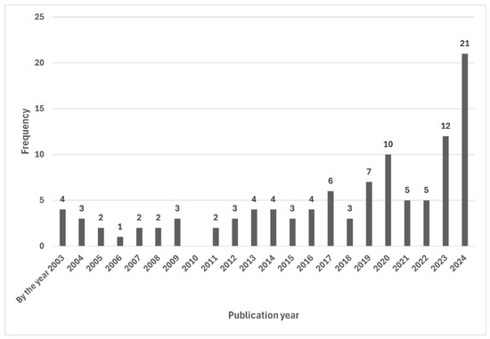 The number of references by publication year is presented in Figure 2. If we examine the distribution of papers by publication date, we can see that most were published in 2024, 21 papers. The oldest paper was published in 1990 [16], and there are just a few papers published till 2003. As early as 1990, a computer program was used for parameter estimation.