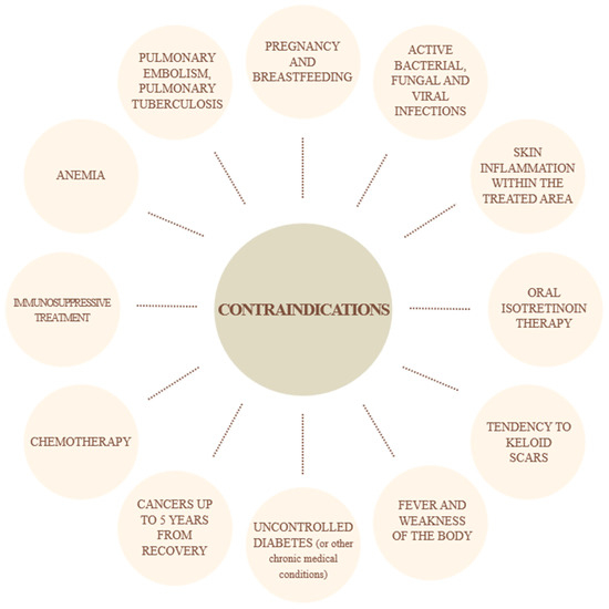 26]. A group of 80 people with dark circles under the eyes was divided into two equal groups: in group A, carbon dioxide was applied at a flow rate of 30 mL/min, and in group B, it was applied at a flow rate of 60 mL/min. The same amount of gas was administered in both groups. The results were evaluated 6 weeks after the last session. The study reported a significant lightening of the shadows in both groups. However, no significant differences were found in the effects between the carbon dioxide flow rates used, but significantly more adverse effects (e.g., heaviness and puffiness followed by headaches) were observed in the group using the higher flow rate (60 mL/min). Less frequent adverse events included pain, erythema, and ecchymosis. No significant differences in overall satisfaction of subjects after treatment were found between the two groups.