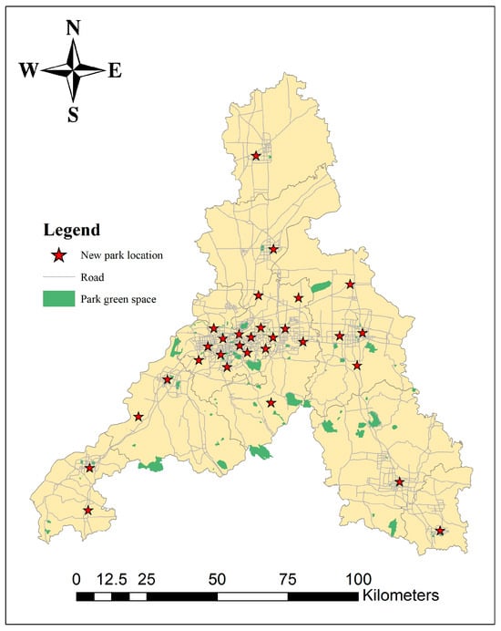 - Yan, W.Q.; Wang, S.J. Analysis on the spatial accessibility of parks and green spaces and optimal site selection—Taking Weifang prefecture-level city as an example. IOP Conf. Ser. Earth Environ. Sci. 2021, 865, 012020. [Google Scholar] [CrossRef]