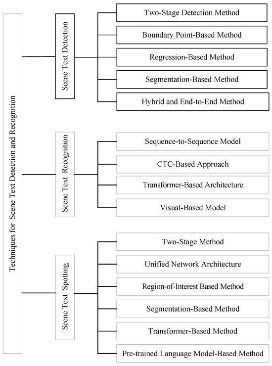 As illustrated in the schematic framework depicted in Figure 1, our research provides a comprehensive and systematic exploration of contemporary methodologies in scene text understanding, adopting three interrelated yet distinct perspectives: Scene Text Detection, Scene Text Recognition, and Scene Text Spotting. Scene Text Detection forms the bedrock of this pipeline, focusing on accurately identifying and localizing text regions within complex natural images. Given the variability in text shapes, sizes, orientations, and cluttered backgrounds, detection algorithms must exhibit robustness and adaptability. These methods, formulated as object detection problems, aim to delineate text boundaries through bounding boxes or pixel-level masks, addressing challenges such as partial occlusion and font diversity. The advent of deep learning has revolutionized this field, with architectures like Faster R-CNN [9], Mask R-CNN [10], and fully convolutional networks (FCNs) [17] setting benchmarks for accuracy across diverse scenarios.