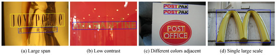 - Lee, S.; Cho, M.S.; Jung, K.; Kim, J.H. Scene text extraction with edge constraint and text collinearity. In Proceedings of the 2010 20th International Conference on Pattern Recognition, Istanbul, Turkey, 23–26 August 2010; pp. 3983–3986. [Google Scholar] [CrossRef]