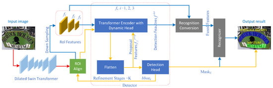 - Ronen, R.; Tsiper, S.; Anschel, O.; Lavi, I.; Markovitz, A.; Manmatha, R. GLASS: Global to local attention for scene-text spotting. In Lecture Notes in Computer Science, Proceedings of the Computer Vision—ECCV 2022, Tel Aviv, Israel, 23–27 October 2022; Springer: Cham, Switzerland, 2022; Volume 13688, pp. 249–266. [Google Scholar] [CrossRef]